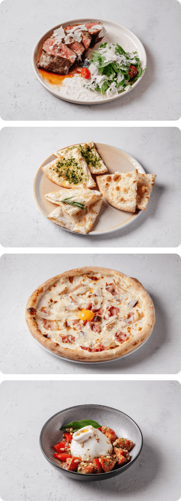 Мы за настоящий вкус, именно поэтому для приготовления традиционных итальянских блюд используем только натуральные ингредиенты. Пасту мы готовим из итальянской муки из твердых сортов пшеницы, салаты заправляем оливковым маслом высшего качества, а мясо, овощи и молочную продукцию закупаем у местных фермеров